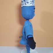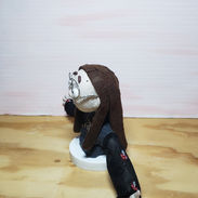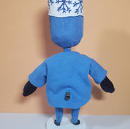 This is the puppet from my senior project "Frosting Factory." Jiff has a wire armature. She has an epoxy putty head, shoes, and gloves. She has silicone arms and legs. Her gloves are coated in colored silicone. Her mouth and eye brows are made of epoxy and are removable, using earring backers. Her hair is yarn. Her outfit is sewn fabric.